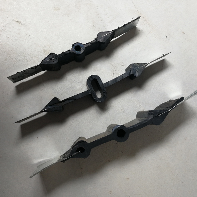 施工安裝:止水帶是在混凝土澆注過程式中部分或全部澆埋在混凝土中, 混凝土中有許多尖角的石子和銳利的鋼筋頭,由于塑料和橡膠的撕裂強度比拉伸強低3-5倍,止水帶一旦被刺破或撕裂時,不需很大外外力裂口就會擴大,所以在止水帶定位和混凝土澆搗過程中,應注意定位方法和澆搗壓力,以免止水帶被刺破,所以在止水帶定位和混凝土澆搗過程中,應注意定位方法和澆搗壓力,以免止水帶被刺破,影響止水效果,具體
